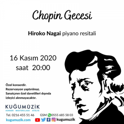 “Piyanonun şairi” Polonyalı besteci ve piyanist Frédéric Chopin’i muazzam piyano repertuarından seçme eserlerden oluşan bir piyano resitali ile anıyoruz.